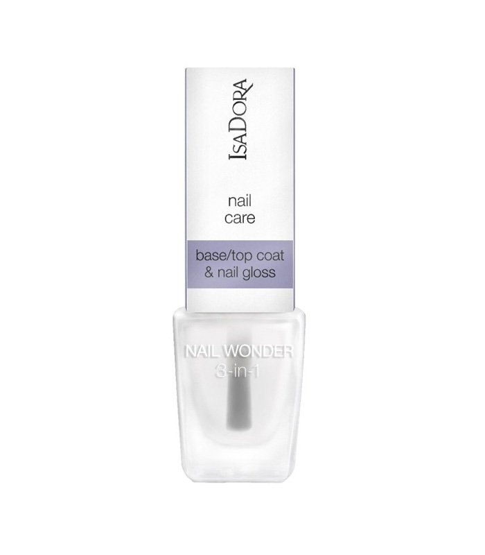 IsaDora Nail Wonder 3-i-1 er et multifunksjonelt negleprodukt som kan brukes både som base coat, topplakk og som en blank neglelakk